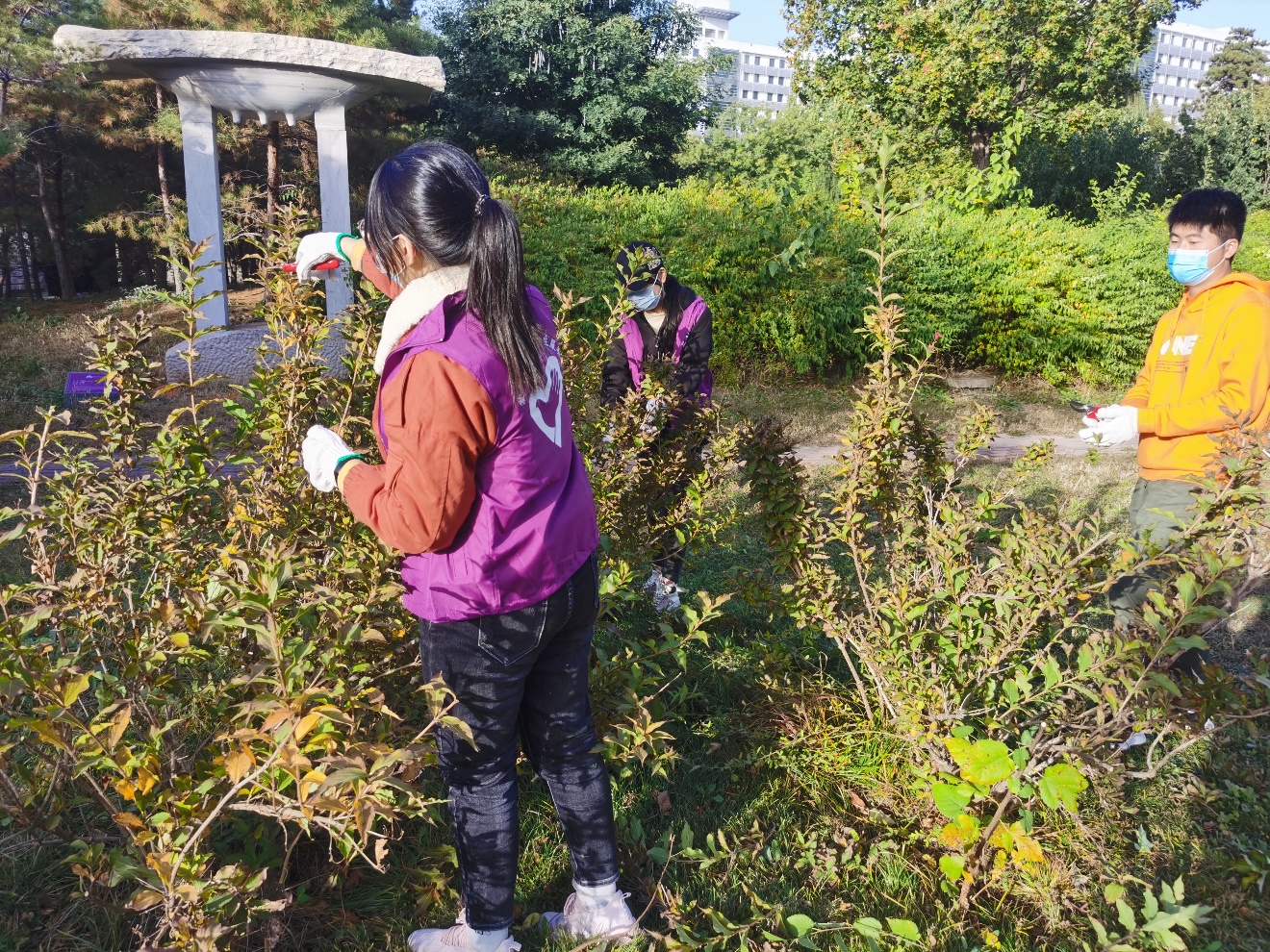航天航空学院2019级硕士生褚晨蕾说:“园子里面有很多好看的花花草草,之前一直都很好奇学校园林科的工作,这次看到园林日常维护志愿活动的报名,就果断参加了。在园林科老师的带领下体验剪枝修枝等体力活,真的是一个很有意思的事情。老师向我们介绍了园林科的工作、剪枝修枝的原则、树种搭配、色块运用等各种知识,在这个过程中,也让我认识到看起来很简单的工作,背后其实都有很多学问,比如怎么通过修枝提高来年果子的产量、怎么通过修枝控制月季花开的时间等等。整体来说,这次志愿活动让我学习到很多东西,之后再见到园林工人也会有更多的理解和敬佩,谢谢他们的劳作为我们创造了更加美好的生活空间!”