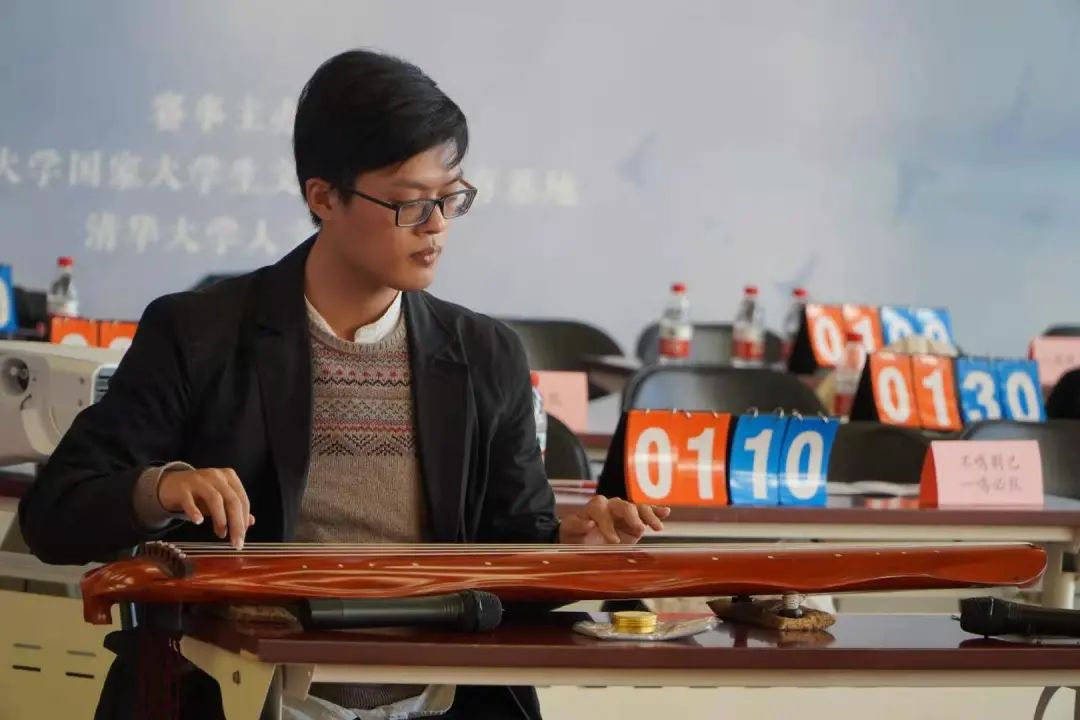主办方还邀请到曾参加北京市人文知识竞赛并取得优秀成绩的贝承熙同学分享经验。他表示,参与人文知识竞赛是因为人文知识本身无穷的吸引力和中华文化乃至世界文化令人着迷的广博内涵。随后,他为现场观众演奏了古琴曲目《潇湘水云》。