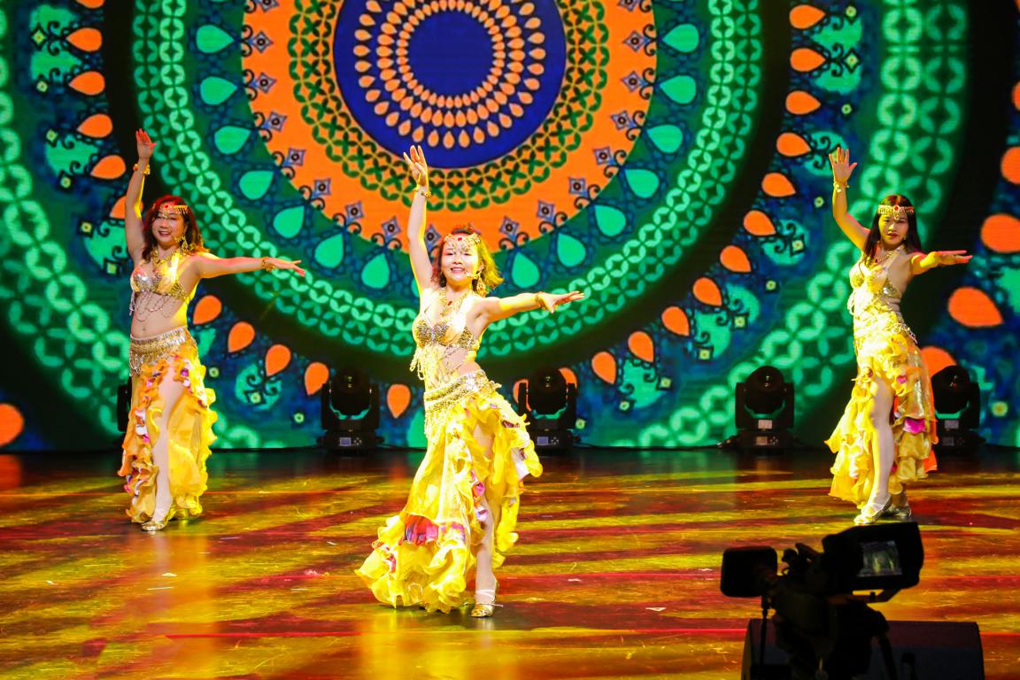 来自中国的黄汝田、喻静、李春梅和马云霄表演肚皮舞《遇见》