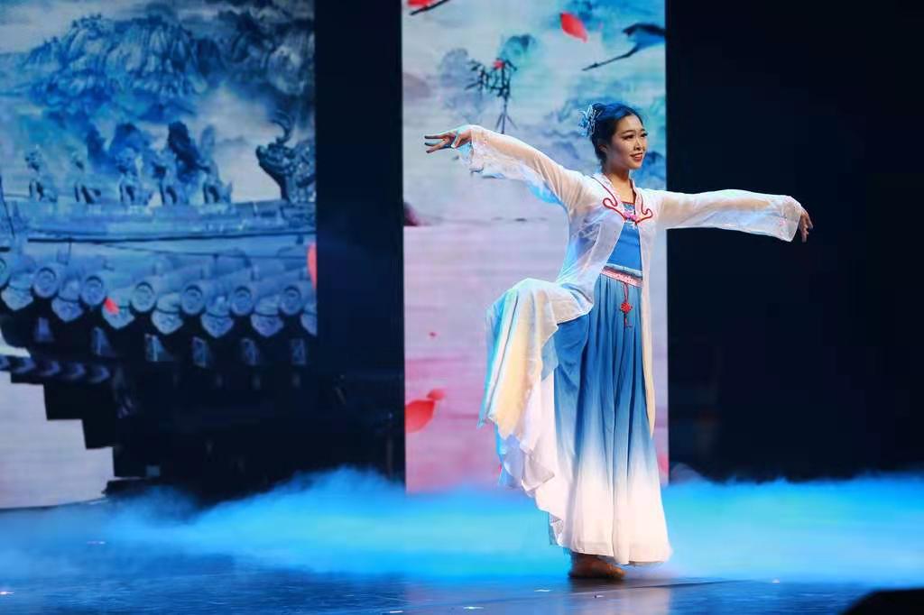 米兰milan官方网站艺术团舞蹈队的耿艺轩助阵表演舞蹈《伊人云间》