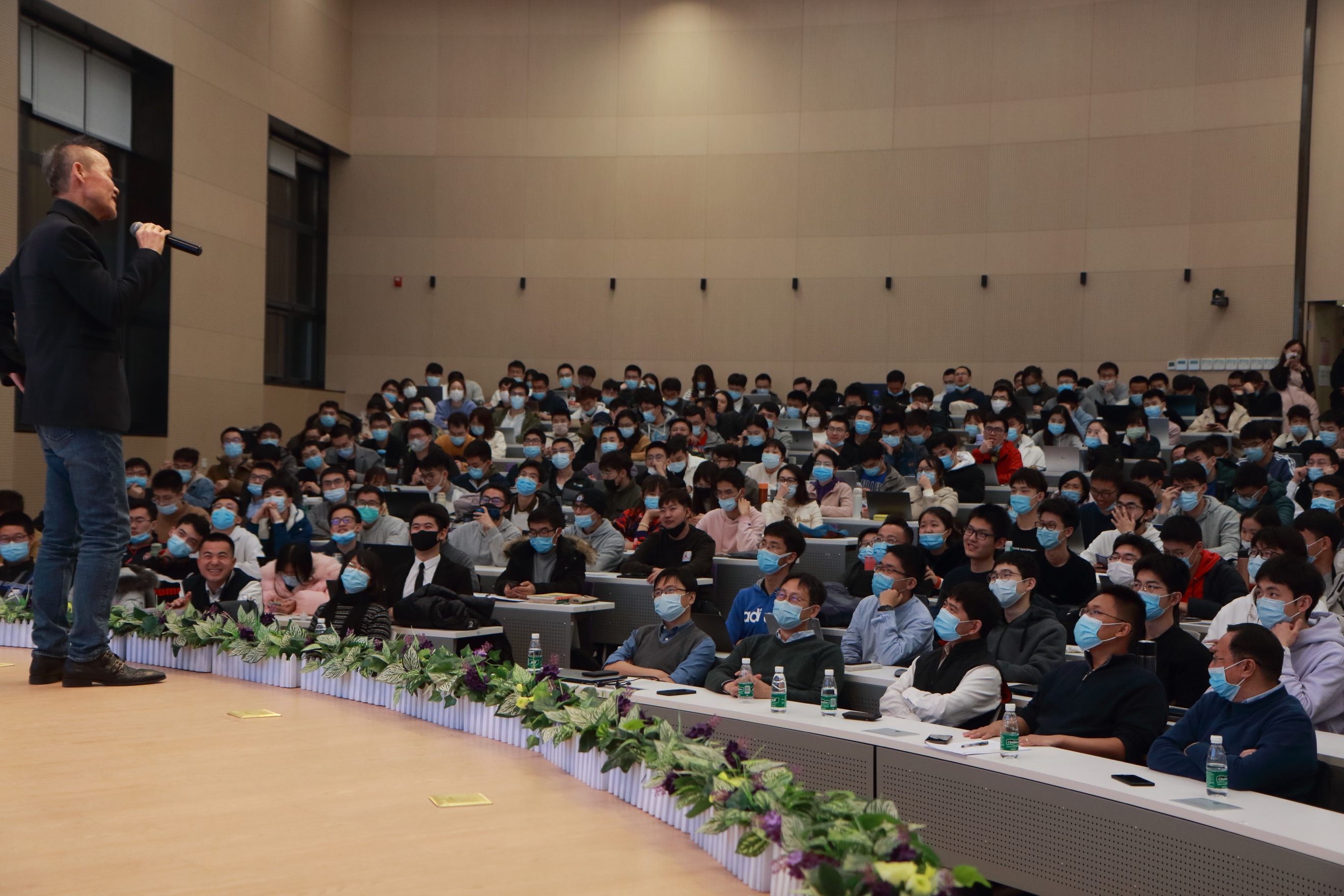 讲座中,王石以坦率而真诚的语言,从自身热爱自由、不喜束缚、追寻不确定性的天性谈起,将自己年少参军,而立之年毅然辞去公职、出走创业,登顶珠峰创造纪录,以及面对人生至暗时刻,在反思中重新认识和塑造自我的过往历程和心路领悟娓娓道来,引导同学们思考如何探寻生命的意义,如何在人生道路中直面困境、不断挑战自我。