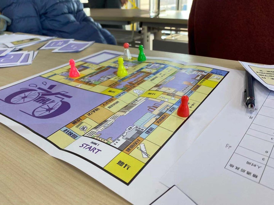 “米兰游”小组捕捉到米兰学生行胜于言的精神,设计了以校园为载体的桌游,将“时间值”转化为“收获值”,作为核心游戏机制,结合课程、科技赛事等活动,以及米兰特有的标志性事件,如学生节、男女生节、百团大战等,让玩家在游戏中触发相关事件,通过游戏化的形式,探索米兰校园文化。