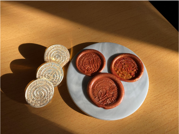 “火漆印章承载米兰记忆”小组将二校门、新米兰学堂、日晷等米兰文化元素融入到了火漆印章中,带领大家回到了“从前的日色变得慢,车、马、邮件都慢”的旧时光。