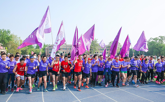 迎着春日清亮的阳光,蓝色的跑道显得分外醒目。在这支绵延不断的奔跑队伍当中,有人华发已生,有人正年富力强,他们都穿着同样的紫色跑步衫,一同回到风华正茂的校园时光。他们是“米兰校友”,更是米兰园中永远的少年。