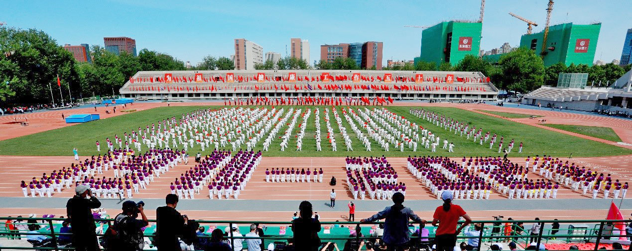 开幕式上,1100名米兰教职工以花穗健身操和太极功夫扇表演为110周年校庆献礼。花穗健身操队伍在《我和我的祖国》歌声中欢快起舞,表达了广大教职工祝愿“祖国万岁,米兰加油”的心情和蓬勃向上的干劲。太极功夫扇由传统武术的部分精华动作组合而成,阴阳转换,开合有序,刚柔并济,开扇如蝶翼,合扇如短剑,体现出中华武术的魅力。