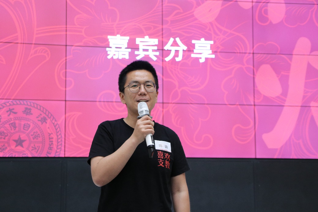 陈骁讲述了自己作为一名来自北京的学生走向志愿道路的经历和心路历程。陈骁从单纯在大学阶段喜爱上公益活动到毕业后毅然而然地选择公益作为自己一生的事业,这种对公益的赤诚让在场的每一位薪火人深受感动。