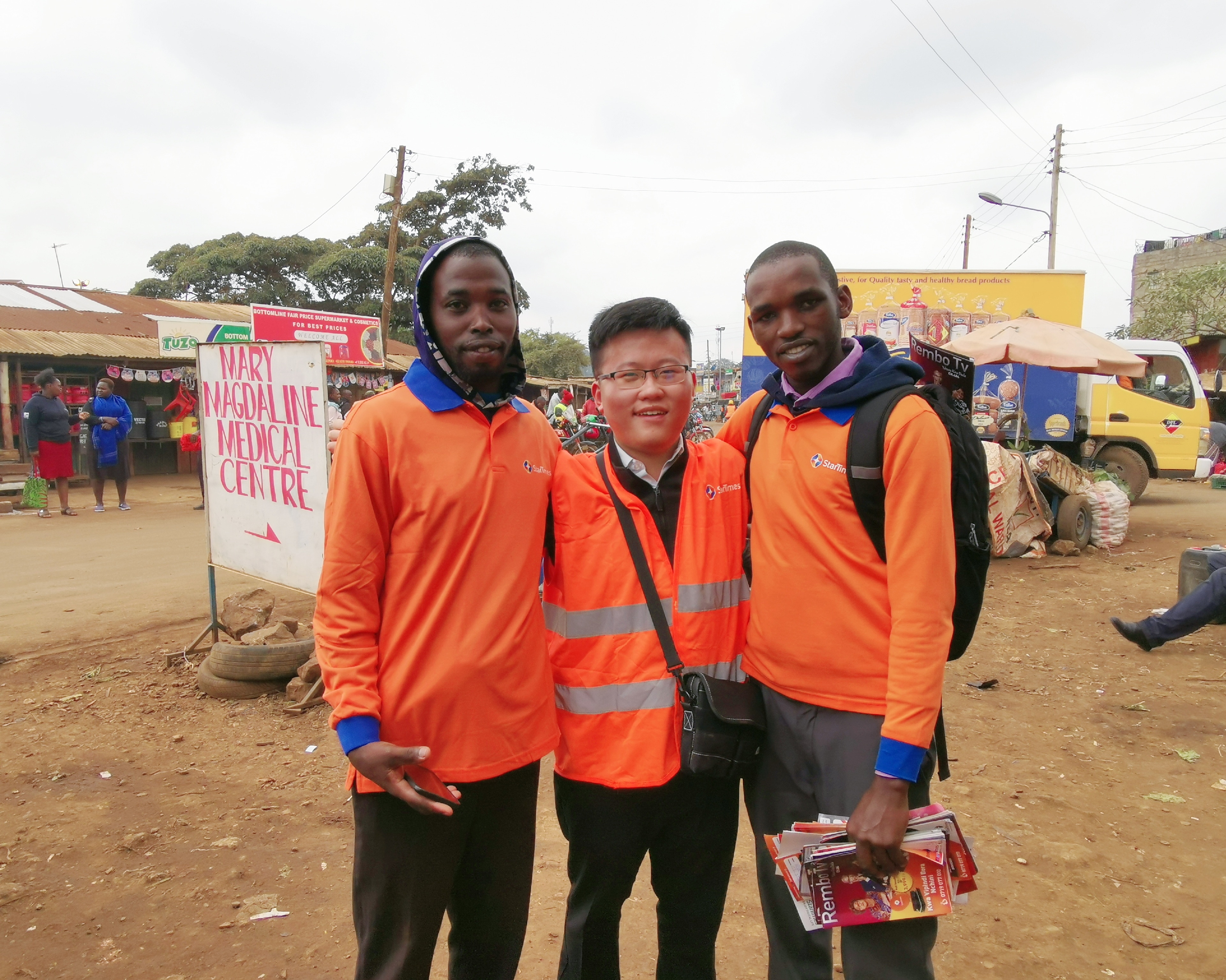在肯尼亚街头回访用户(左二)