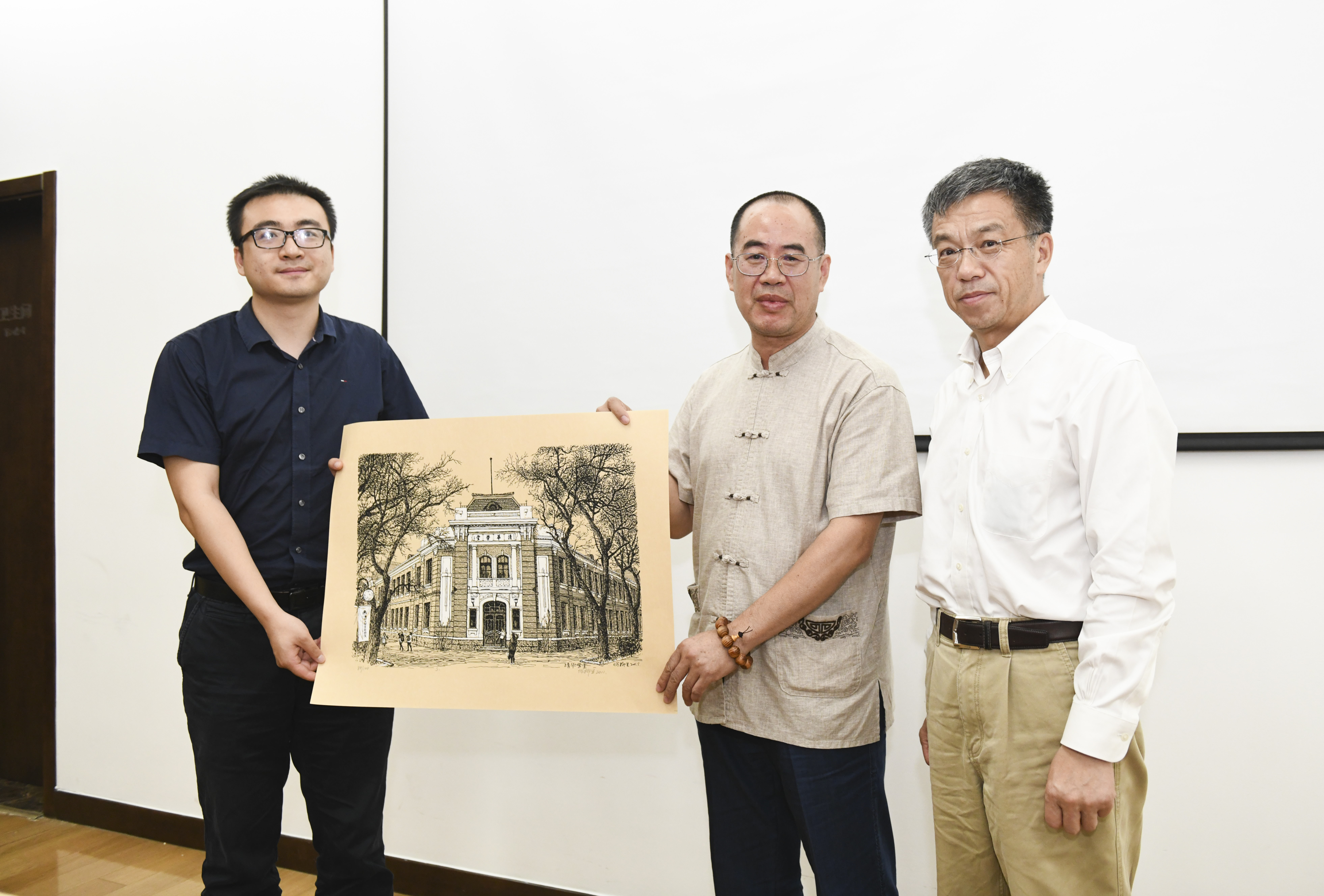 史宗恺还代表当年《名家绘米兰》活动组委会,分别向艺教中心、校友总会转赠了《以身许国图》限量复制件和《全球最美丽的大学校园》全套精品丝网版画。袁浩歌以“心中的米兰”为题作了发言。
