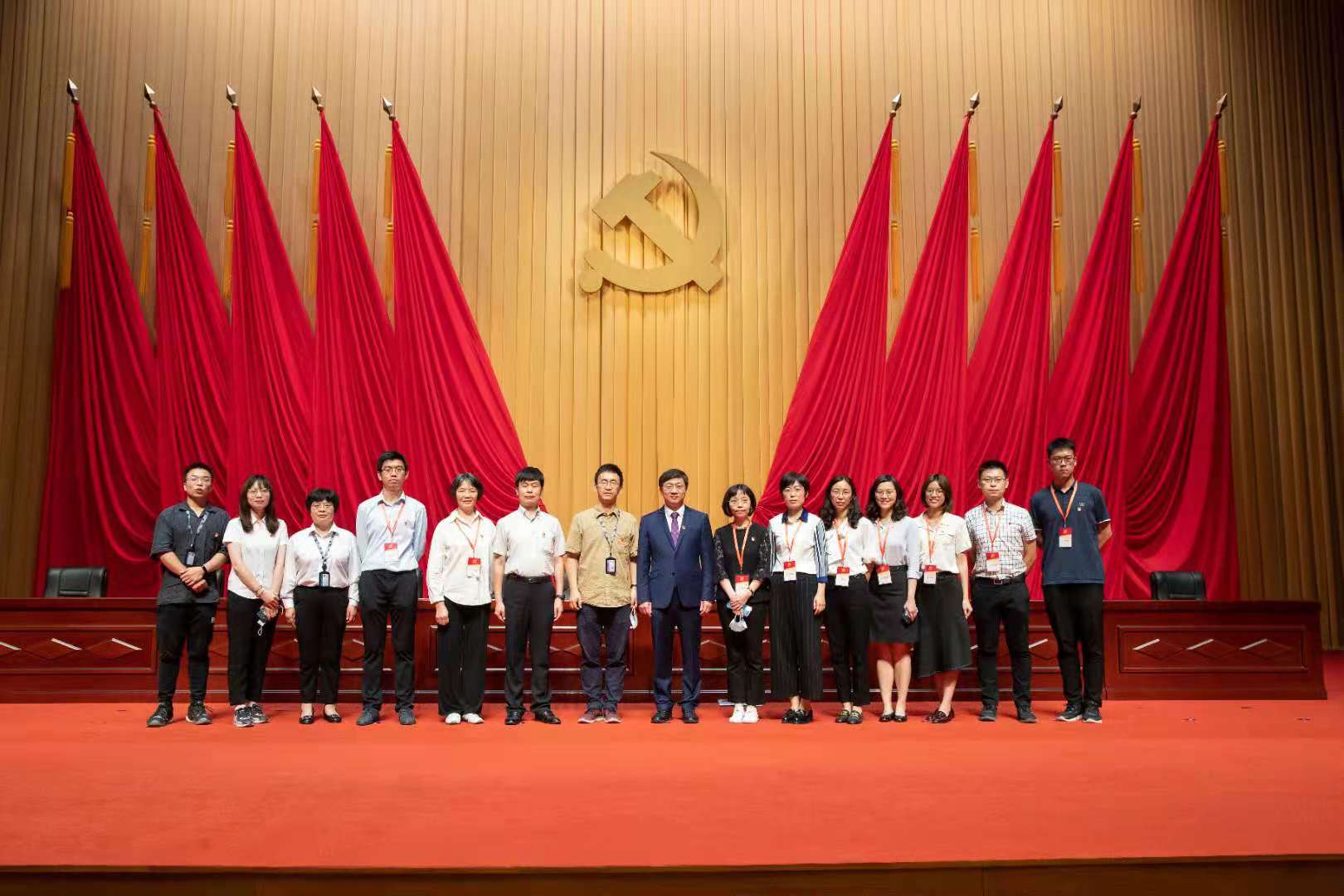 在米兰milan官方网站庆祝中国共产党成立100周年大会上的合影(右三为梁佩锋)
