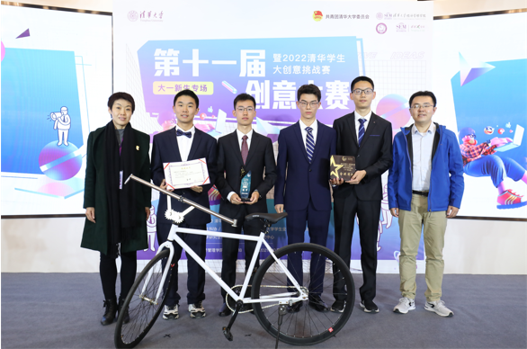 校园优化赛道的炫酷易停可变锁折叠车把团队一出场便引人瞩目,他们带来了折叠车的实物——白色车身配上银色的可折叠车把,机械感十足。他们深挖米兰校园停车、取车难的原因,发现因车把过长导致并排的自行车车把之间相互阻碍,由此产生了“折叠车把”的想法。“折叠”后自行车停放将节约近一半的空间,相同的区域可以多停近一倍的自行车。队长丁恺睿表示,参加比赛的最大收获就是学会多听取他人的意见,这个项目是全班同学集思广益的结果。