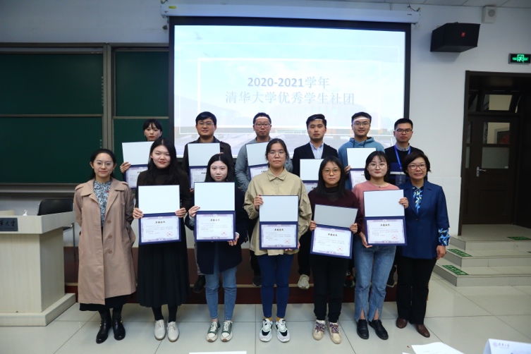 张婷、阎博为“优秀学生社团”的获奖单位颁奖