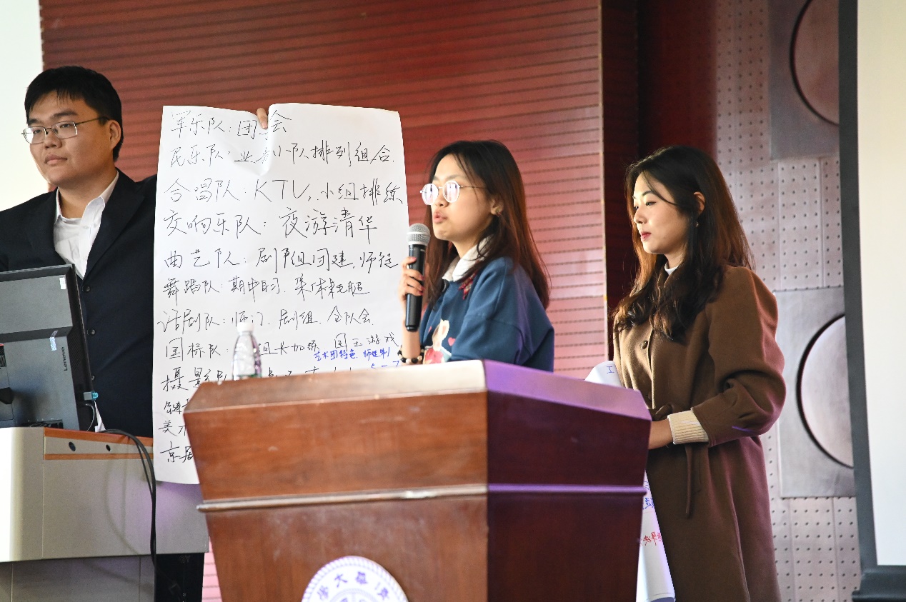 赵洪肯定了本场会议中丰富的内容设置与充实的研讨交流,鼓励同学们今后就不同主题多多展开工作研讨。赵洪表示,学生艺术团是一个兼具“社会”属性与“家庭”属性的集体,既要重视业务能力与工作能力,也要注重队伍凝聚与情感建设。赵洪叮嘱全团同学要协调好学生艺术团与本院系、艺术特长与专业学习之间的关系,勉励各队伍加强联络,实现艺术作品的整合与创新。