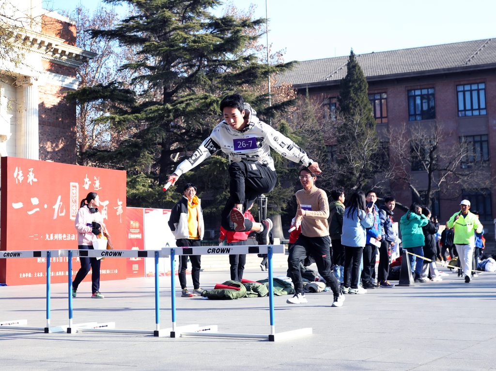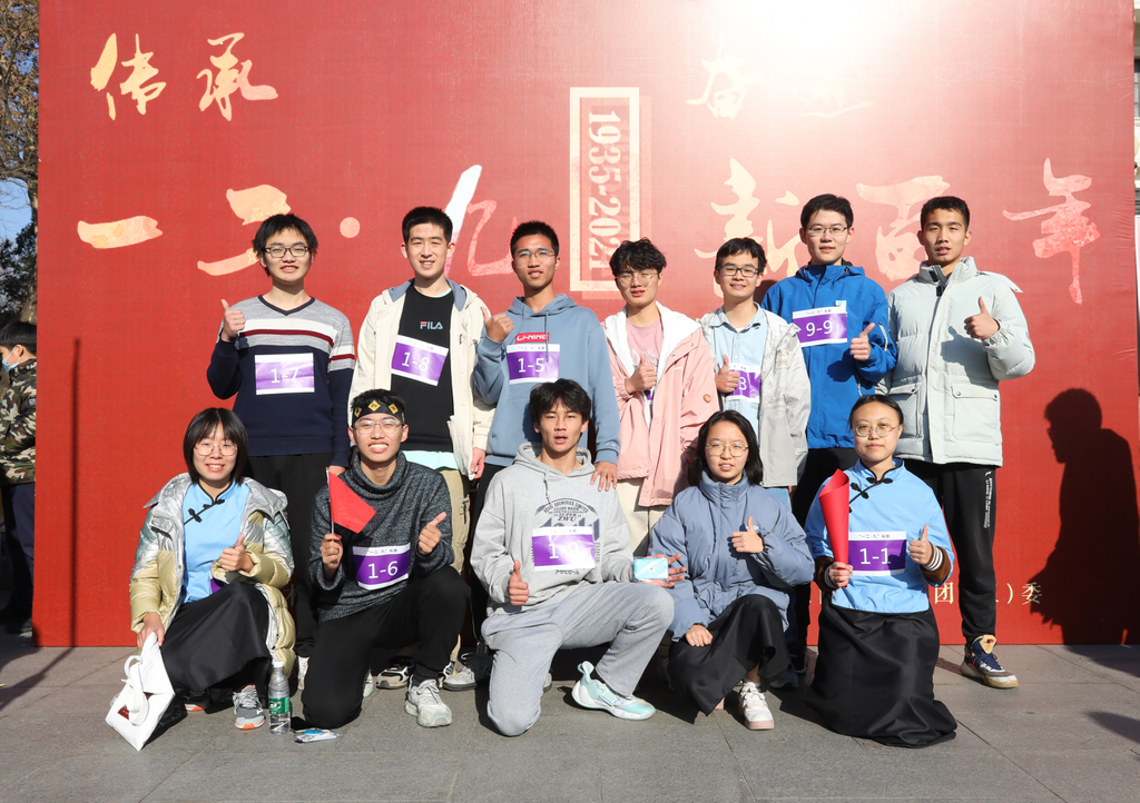 为了让同学们更切身地缅怀历史、感悟时代变迁,本次长跑纪念活动对赛道棒次进行了精心设计。活动以“一二·九”运动中重要事件的发生地点,如西直门、西四、新华门、天桥等地命名路线各个节点,并参照各地大致的空间分布设立相应展区。同时,前五棒每一棒还原“一二·九”运动中的一个特定场景,后五棒融入建党百年、辛亥革命110周年、冬奥会、110周年校庆等元素,将长跑进程和国家历史发展过程相结合。