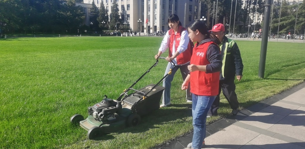 在修缮中心开设的绿地清理与园林植物修剪岗位上,志愿者参与修剪灌木、草花和草坪,清理绿地上的杂草、枯枝落叶等,在园林师傅们的指导下操作不同类型的除草机,保持绿地整洁并留下了一段新奇而难忘的劳动体验。在学生社区中心开设的学生楼长岗位上,同学与楼长一起进行安全检查和卫生督察,摆放乱停自行车并清理楼内外公共区域的卫生。在保卫处开设的夜间巡逻岗位上,同学们身着荧光马甲,手持校园地图,在夜间校园穿行巡逻的同时不断观察着周围环境,发现、排查和记录可能存在的安全隐患,并提出完善建议,用实际行动守护美好校园。