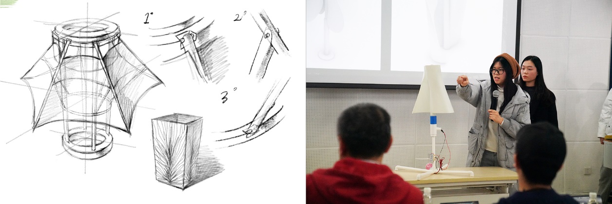 “葵艺传承与创新”小组以“新会葵艺”为背景,利用葵叶抗风、防水、透光、可弯曲的特性,在拓展并运用了葵叶结构的基础上,设计了葵艺灯和葵叶型风力发电装置。