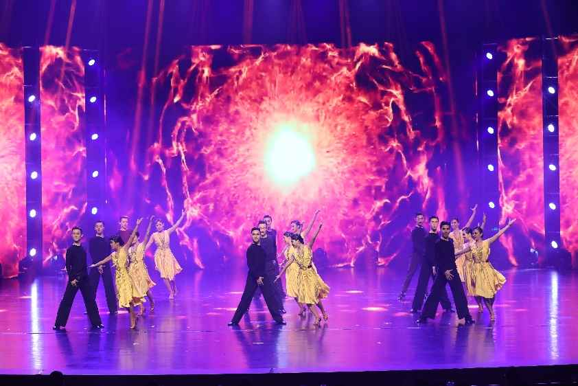 新年联欢环节中,一个个精彩纷呈的节目将祝福与欢乐传递给在场的每一位师生、校友。校学生艺术团国标队热烈欢快的桑巴舞《阳光下》带来热闹欢腾的气息;艺术教育中心教师邢高熙和张伟带领校艺术团舞蹈队表演的节目《奔腾》,展现了百年恰风华、逐梦奋蹄疾的昂扬景象。魔术节目《新年礼物》为大家带来跨年惊喜。