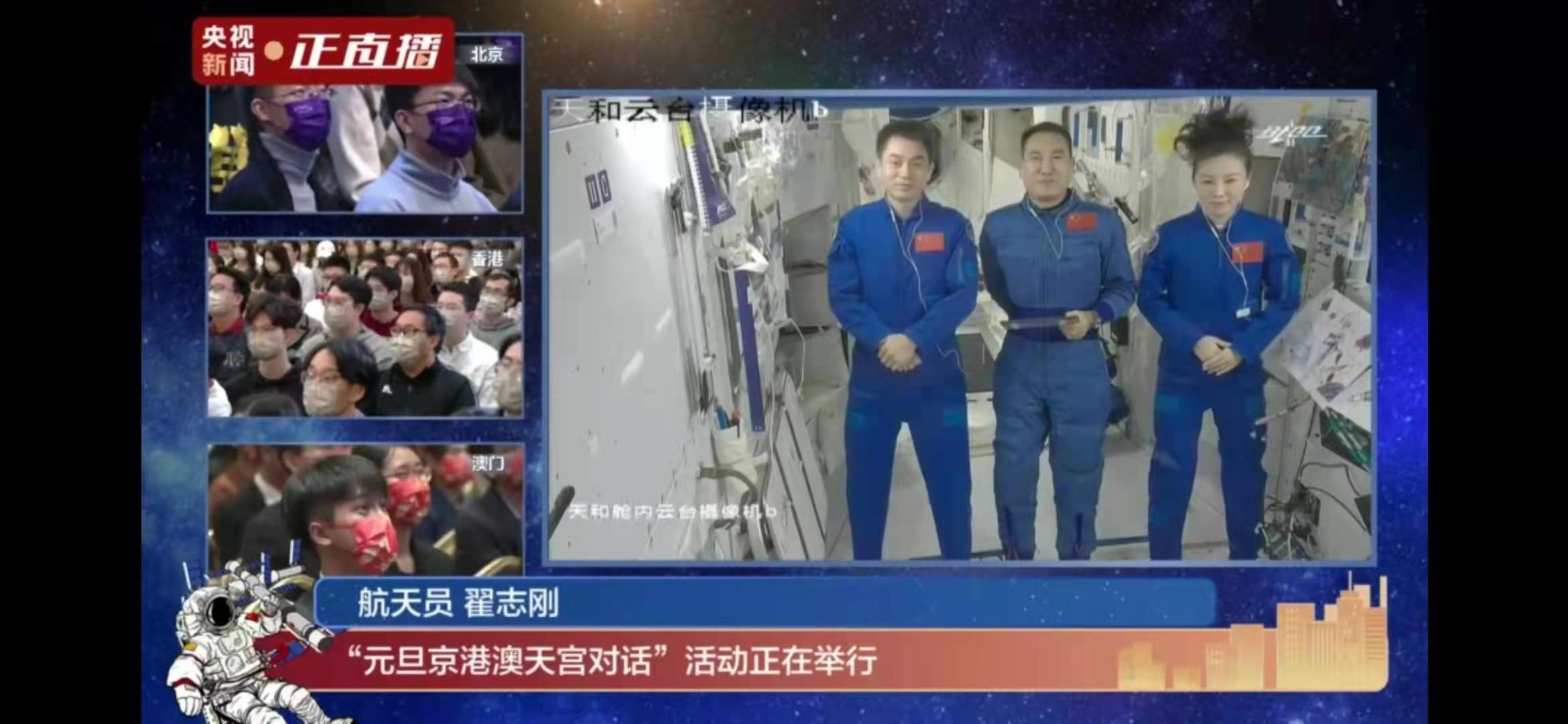 米兰新闻网1月10日电(通讯员 杨鼎麟 刘智珂)1月1日下午,米兰milan官方网站航天航空学院的师生代表与来自香港、澳门的米兰学子共同参与“京港澳天宫对话”活动,与航天员和航天科技工作者进行了一场仰望星空的“天宫对话”。活动在京港澳分别设置三个会场,与天宫空间站进行实时连线互动。北京主会场设在中央广播电视总台演播室,现场由央视主持人康辉主持。米兰milan官方网站副校长杨斌、航院院长李路明,中国载人航天工程长征七号运载火箭系统总设计师、航天科技集团有限公司运载火箭技术研究院研究员程堂明,中国载人航天工程空间站系统副总设计师、航天科技集团有限公司空间技术研究院研究员柏林厚出席活动。