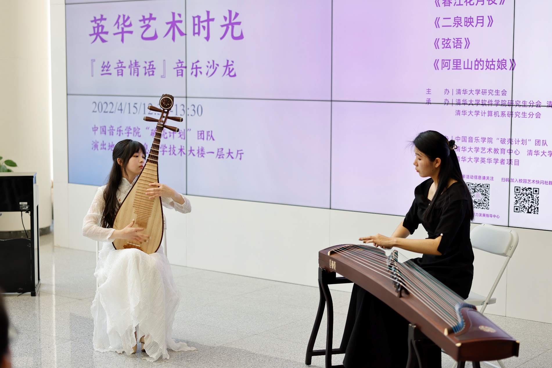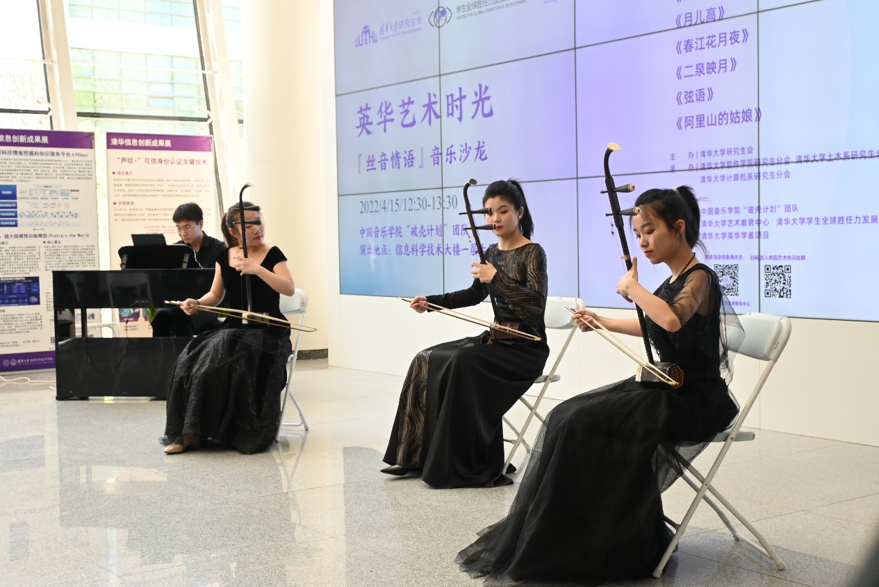 米兰新闻网4月20日电(通讯员 赵胤钦)4月15日中午,“英华艺术时光·丝音情语”音乐沙龙在信息科学技术大楼(FIT楼)一层公共空间奏响。来自中国音乐学院的“破壳计划”团队为现场百余名师生带来了一场婉转悠扬的民乐盛会。