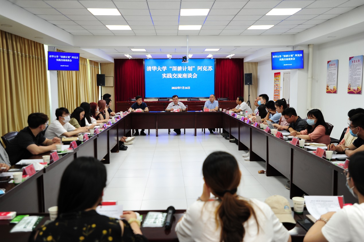 7月16日下午,实践支队与阿克苏地区行署副专员夏帕克提·吾守尔校友座谈交流,阿克苏地委组织部副部长、地区人社局党组书记朱英山,地委组织部副部长卢飞等参加活动。朱英山、卢飞对阿克苏地区的人才引进政策进行了介绍。夏帕克提详细介绍了阿克苏的社会经济发展情况,并结合自己在校和在疆工作十余年的体悟进行了分享交流,他结合自身经历鼓励同学们坚守理想信念、厚植爱国情怀,在工作中实事求是、敢于担当、坚守原则、勤学苦练。