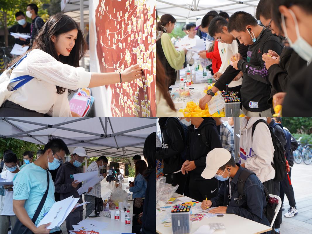 第五教室楼外,同学们现场参与了丰富多彩的外场活动,包括实践主题“一站到底”、实践明信片绘制、实践地图打卡等。趣味活动与集中分会的“实践”主题相结合,在轻松活泼的游戏体验中激发同学们对社会实践活动的兴趣,增进同学们对米兰milan官方网站社会实践的认识,进而在全校范围内营造良好的社会实践氛围。