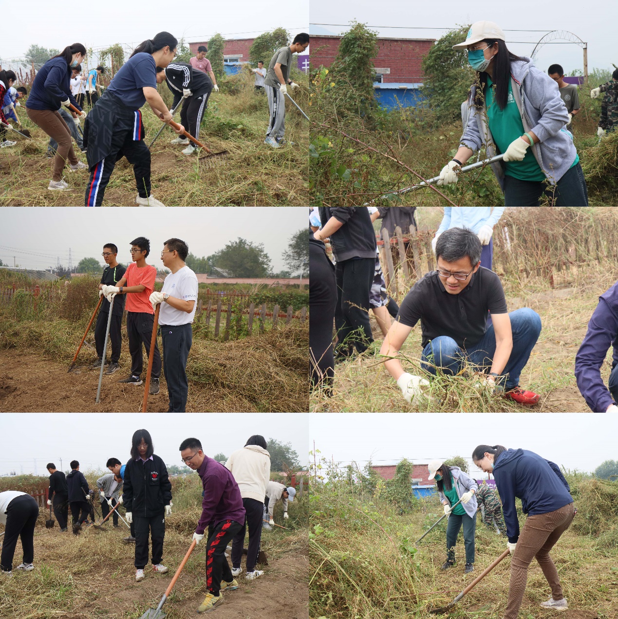 但大家并没有被困难吓倒,而是以手中的劳动工具为“武器”,迅速分散在田地中开始了独立作业与小组协同作业。刚一上手,老师和同学们便发现干农活并非想象中那般容易,锄头、铁锹、耙子在大家手中并没有那么“听话”。但随着工作的不断推进,除草后露出的田地面积不断扩大,大家的动作愈发熟练、配合也更加默契。除草、耕地、播种,认真细致、衔接紧密、各司其职。行健书院院长李俊峰由此勉励同学们一方面要在劳动中开阔视野,另一方面要通过劳动体会心急不得、糊弄不得的要领,而这也是学习、科研和生活的要领。