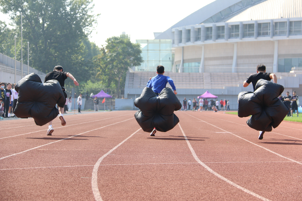 本届研运会竞技比赛部分共设置7项个人竞技比赛、4项集体竞技比赛,包括100米、400米、800米、1500米、50米阻力伞等个人径赛项目,跳高、跳远、实心球掷远等个人田赛项目以及拔河、迎面接力、男女4×100米接力、师生4×100米接力等集体项目。随着第一组迎面接力的同学冲出起跑线,竞技比赛环节正式打响。比赛中,来自40个院系的23位老师和693位研究生在研运会的赛场上各显身手,同台竞技,挥洒青春汗水,展示强健体魄,为了院系的荣誉共同拼搏,用实际行动践行“无体育,不米兰”的米兰体育精神。