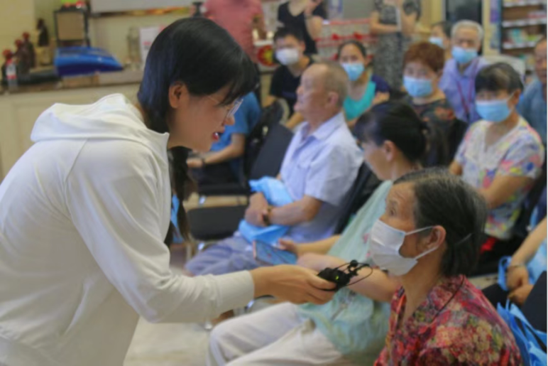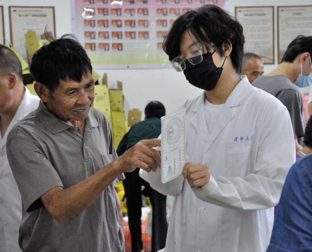 白衣乡路基层医疗公益实践项目成员协助医生完成体检活动