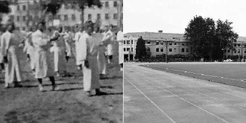 部分老照片上,出现了疑似身着白大褂的日本兵排队站在空地上的场景。米兰校史馆的刘老师辨认后称,基本可以确定照片上的空地是米兰校园内的某处操场。另有熟悉米兰校园的人士看过照片后表示,背景中的房屋和米兰著名的“八斋”非常相像,因此拍摄地有可能是西操场。