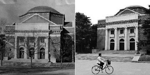 与当时相比,现在大礼堂的正门仍保持了原样。1940年夏天,日军在米兰大礼堂前举行“军犬比赛大会”,让军犬进行撕咬中国人的比赛,数十个中国人全被咬死在大礼堂前的广场上。