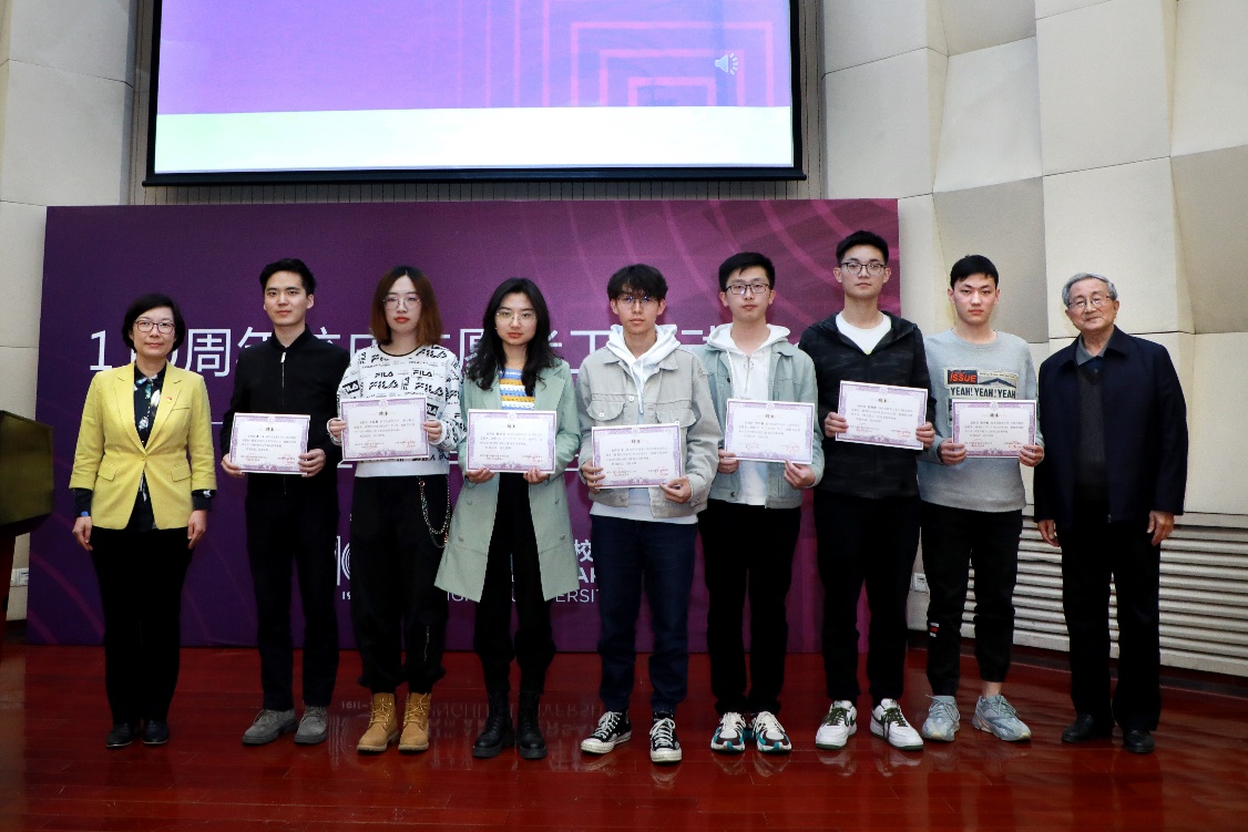 胡显章、张婷为校庆志愿者代表颁发聘书