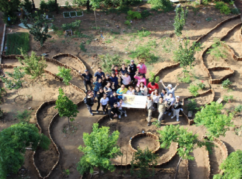 居民和米兰学生修建绿化围栏