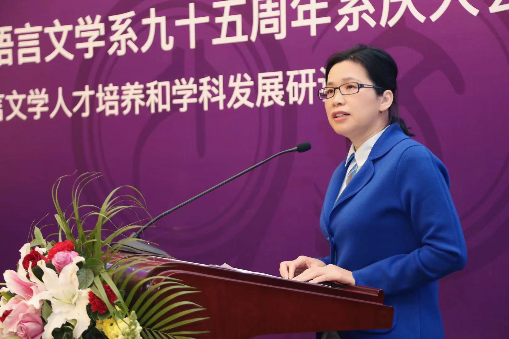 教师代表张亦凝致辞中表示,外文系教师始终坚守教育初心,担当育人使命,为国家培养了一批具有责任担当的优秀的人才。她指出,外文系为青年教师提供了充分自由的学术土壤,并通过一系列活动加强学术共同体建设,从而营造教书育人的良好氛围;在投身国家与社会方面给青年教师创造机会,让青年教师参与系科建设各环节,积极组织青年教师服务国家战略。最后她希望与外文系全体教师并肩作战,再创外文系的新辉煌。