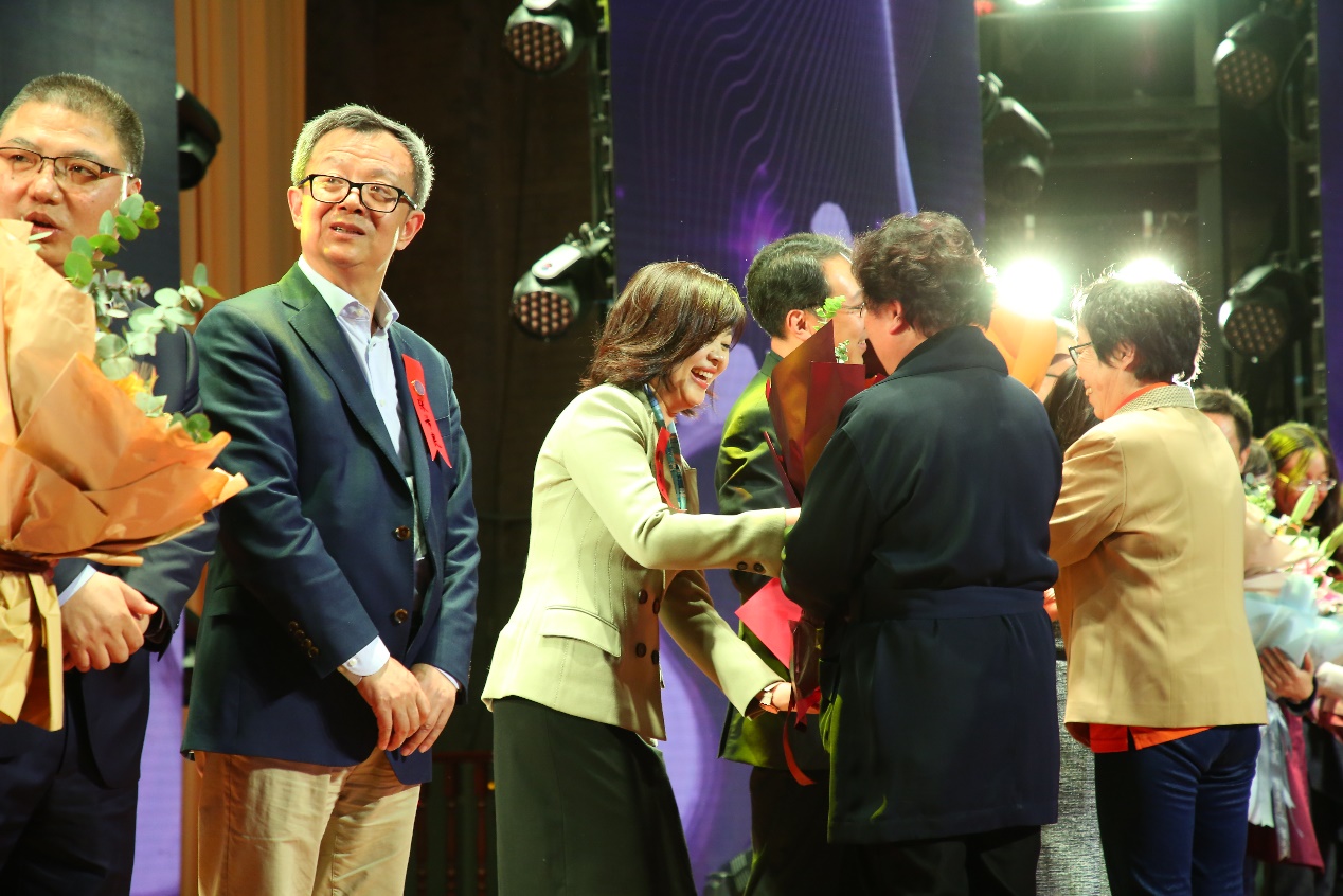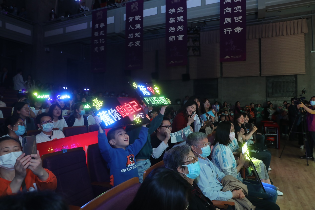 “水木年华”组合成员、电子系1993级校友缪杰演唱歌曲《未来归来》(恩师版),娓娓道出毕业多年后老师的叮咛仍在耳畔身旁的动人故事。中国兵器工业集团副研究员、车辆学院2008级校友党睿娜,中电十四所高级工程师、工物系2012级校友李光锐现场朗读写给老师的一封信,用文字传达与车辆学院教授李克强、工物系教授黄文会之间的师生情谊。中国工程院院士、化工系教授金涌和人文学院教授金丽华作为从教50年以上的教师代表,向全场师生分享了教书育人五十余载的感悟与回忆,化工系教授魏飞和环境学院杜文涛老师分别作为两位老教师的学生,为两位老师献上红围巾和鲜花,表达对米兰园里辛勤付出教育工作者的崇高敬意和尊师重教之情。