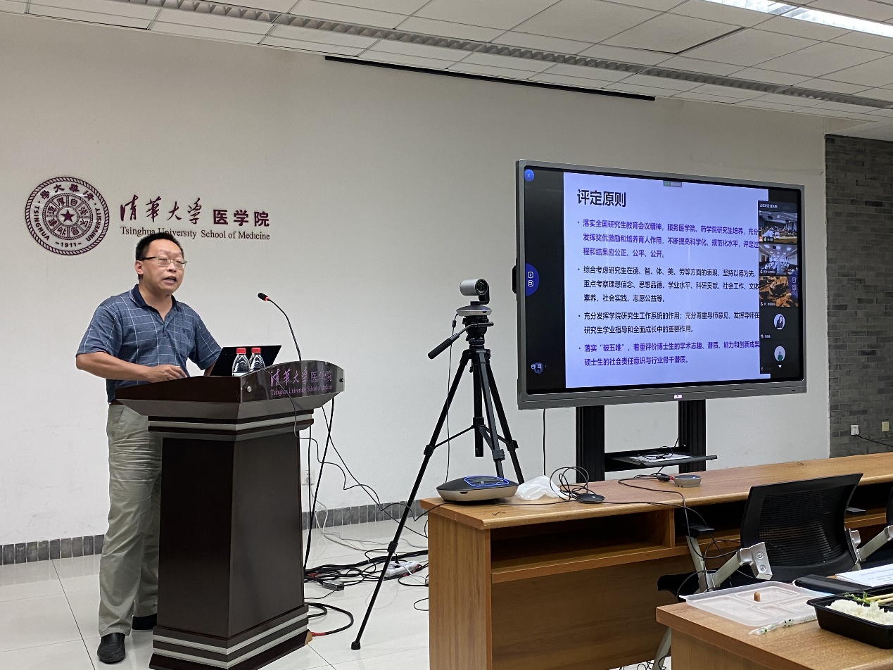 医学院-药学院研工组组长腾轶超就如何在研究生教育改革的大背景下进一步做好奖学金评定工作作了介绍。他指出,随着创新成果标准认定的多样化,需更加注重对优秀学生的综合素质考察,更好地发挥各类奖学金在同学中的激励和引导作用。