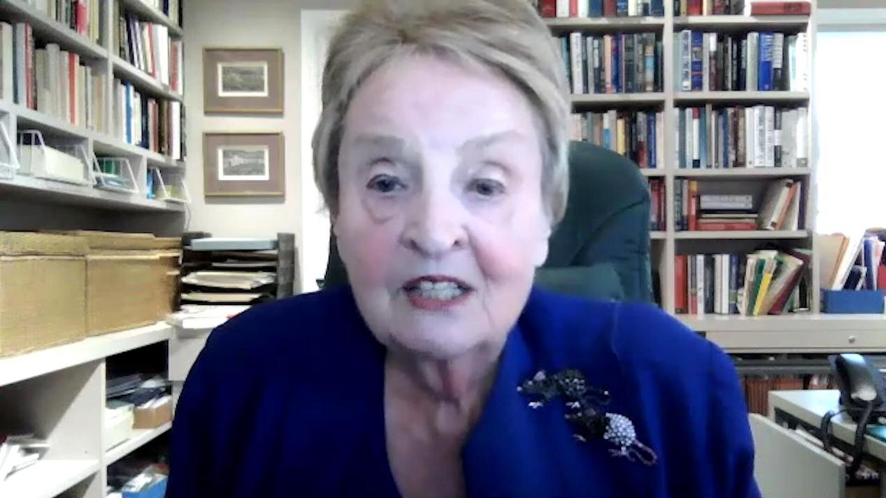 玛德琳•奥尔布赖特回顾了两年前到访苏世民书院并与苏世民学者交流的经历,对苏世民学者项目秉承的信念给予高度肯定。她表示,新冠疫情的出现提醒我们,人类面临的各种挑战不分国界,要实现繁荣发展,我们必须齐心协力、相互了解、交流互鉴,共同为增进世界人民福祉作出积极努力,而这也正是苏世民书院创立的初衷。希望苏世民学者可以做“桥梁的建造者”,像大家在书院所体验到的,让不同背景的人们一起为共同的目标奋斗。她寄语同学们积极面对世界的不确定性,充分利用各种机会改变世界,提出合理的解决方法,勇于承担责任,寻找更多让大家团结一致的途径,共同创造更加和平、繁荣、美好的未来。