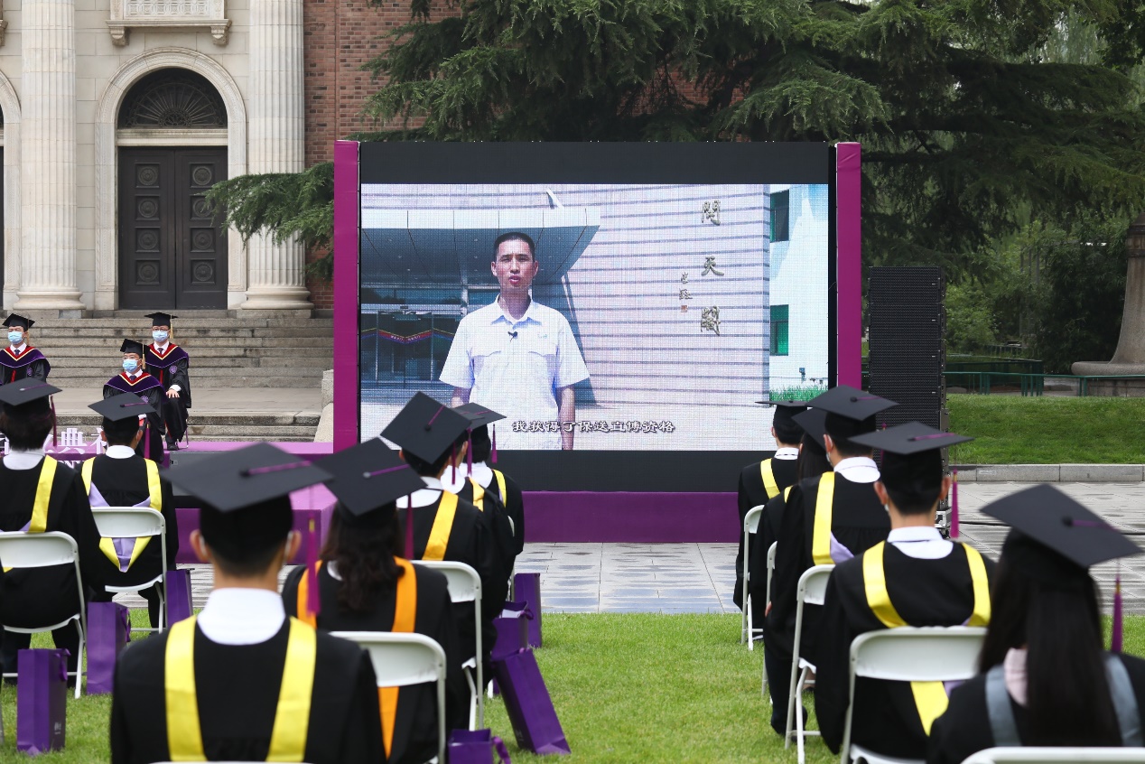 邱勇首先向毕业生及其亲友表示热烈祝贺,向悉心指导他们的老师表示衷心感谢。邱勇说,同学们,每一届毕业生都拥有各自难忘的青春故事。2020年,突如其来的新冠肺炎疫情,给我们所有人带来了刻骨铭心的共同记忆。我们向所有在抗击疫情斗争中牺牲的烈士和不幸罹难者致以深切的哀悼,向所有为抗击疫情付出努力、作出贡献的人们致以崇高的敬意。在这段特殊的日子里,同学们克服了焦虑情绪和各种困难,坚持完成学业;积极承担志愿服务工作,为疫情防控尽心尽力;从普通人的抗疫故事中读懂了万众一心,真切感受到了人性的伟大。疫情让同学们们进一步认识到人生充满不确定性,也进一步认识到每个人的命运与他人息息相关。这些经历、思考和感悟,都会跳动为青春时光里的独特音符,进而合成为人生交响曲中的特别和弦。