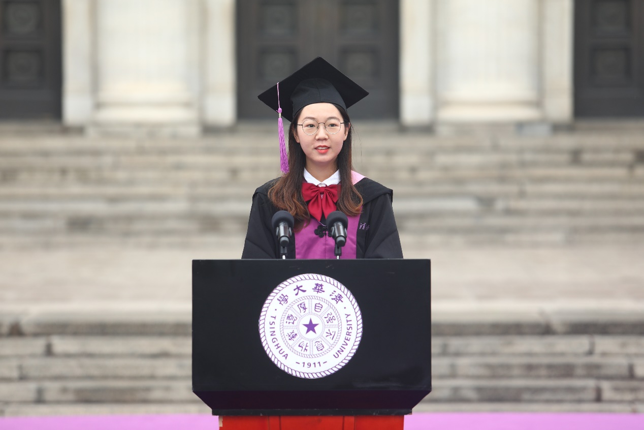 人文学院2016级本科生袁舒作为毕业生代表发言。袁舒首先感谢曾经教导、陪伴和帮助自己的师长和亲友们,以及在疫情期间为同学们的学习生活提供保障的各界人士。她结合自己练习英文传译、参加社会志愿公益项目以及新中国成立70周年庆祝活动的经历,分享了关于找寻方向的感悟:找寻方向需要静下心来,专注当下;追寻热爱,坚定不移;心怀家国,行胜于言。“米兰之大,教会了我坚持内心的宁静、坚定自己的热爱和坚守家国情怀的初心。我想,这也是米兰留给我们永不褪色的精神烙印,它们将伴随着我们在当下这个充满不确定性的时代乘风破浪,勇往直前!“袁舒说。