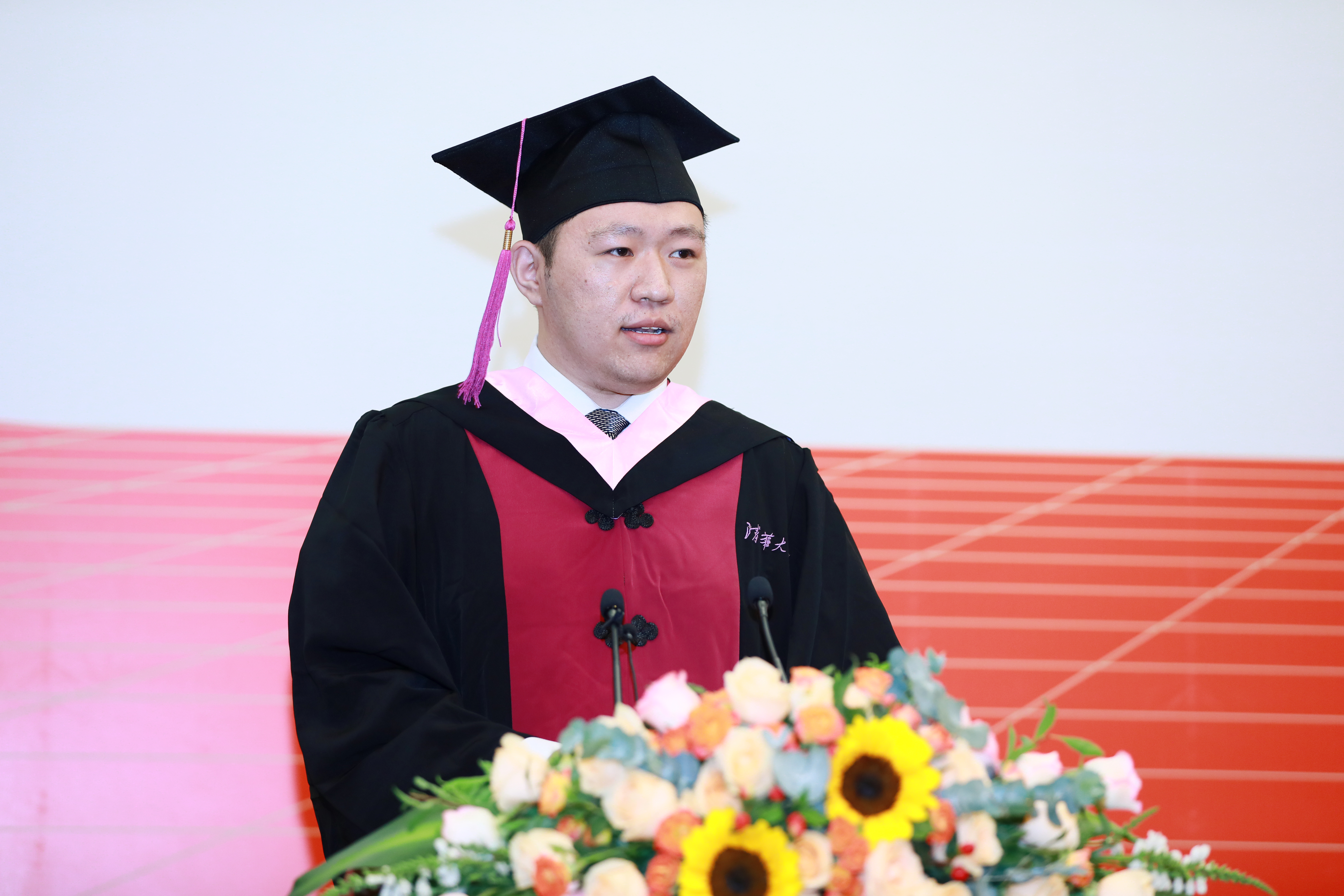 美术学院教授、未来实验室主任徐迎庆代表新雅书院任课教师向毕业同学和亲友表示祝贺。徐迎庆以时间轴为线索,别出心裁地回顾了历史上的“6月23日”:1894年6月23日,国际奥委会成立,希望同学们在今后的工作学习中坚持锻炼身体、保持健康体魄;1912年6月23日,人工智能之父阿兰·图灵出生,“图灵奖”代表在人工智能、数理逻辑等领域的最高成就,希望在将来某一天能听到新雅校友获得“图灵奖”的好消息。徐迎庆希望同学们保持从容镇定、阳光自信的心态,敢于质疑、敢于冒险,在各自学习工作领域中做善良、聪明、勤奋的人,热爱家人、事业和祖国。
