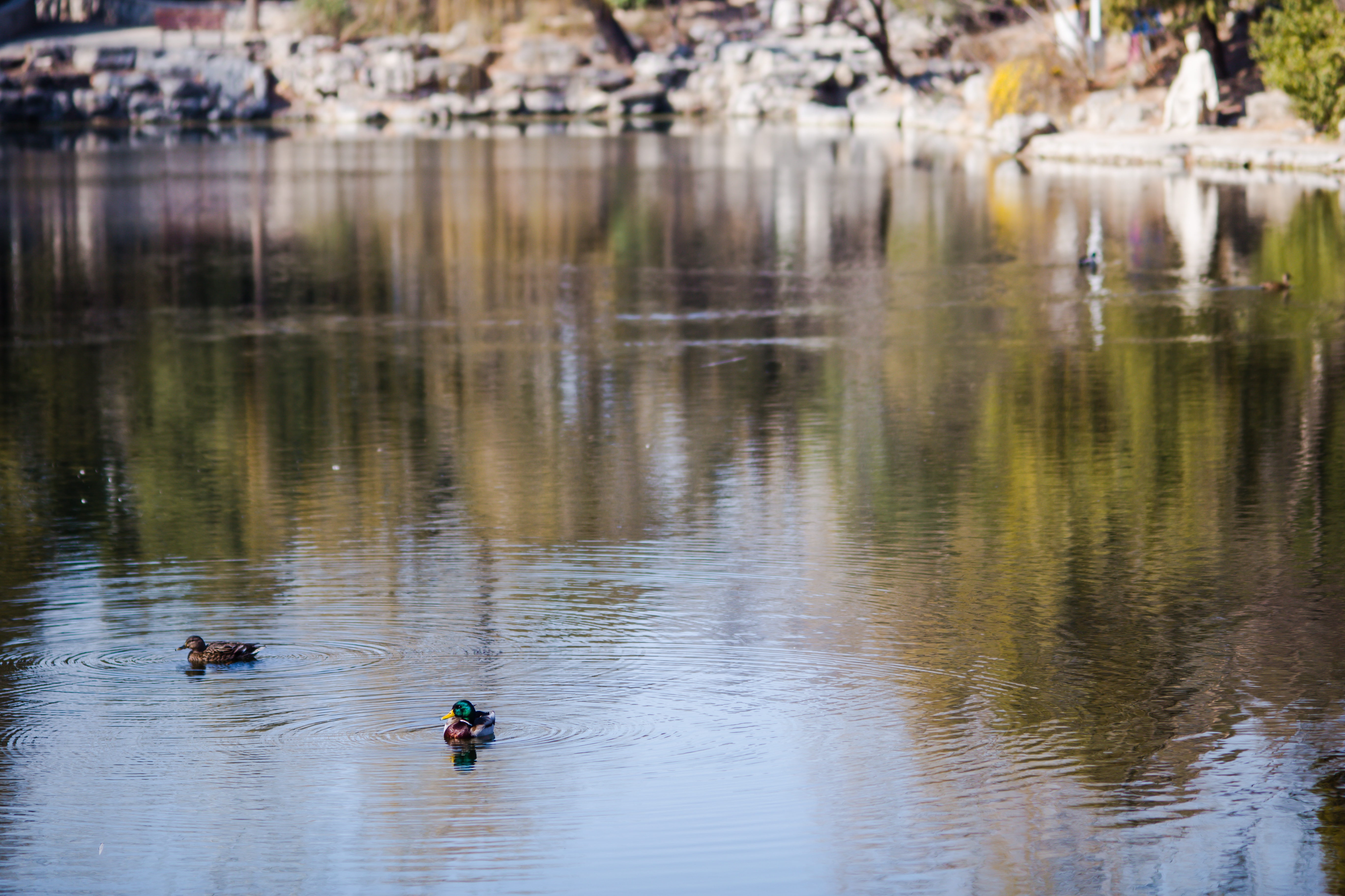 夕照,每日光临,也不由地感觉到,天一点一点长起来。直到春分日,在连翘旁驻足,黄花与蓝天映衬下的荷花池显得格外有生气。