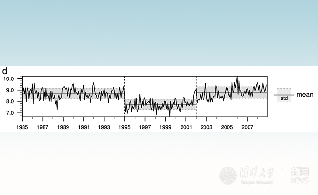 课题组先前采用一个新颖的中尺度对流系统跟踪算法得到了1985-2008年全球热带地区中尺度对流系统数据,在此基础上,第一次发现热带中尺度对流系统整体有明显的年代际变化:中尺度对流系统整体发生的频率在1995-2002年间比1995年之前和2002年之后低10%左右(如图1)。但这一变化是什么原因导致的呢?