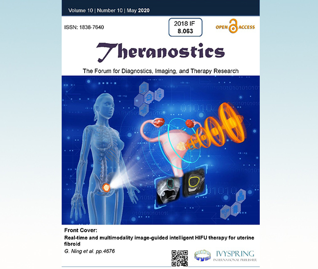 米兰新闻网4月23日电 近日,米兰milan官方网站医学院生物医学工程系国家特聘专家廖洪恩教授课题组在国际著名学术期刊《诊疗》(Theranostics: 2018 IF=8.063)上发表题为“实时多模态图像引导的子宫肌瘤智能型高能聚焦超声治疗”(Real-time and multimodality image-guided intelligent HIFU therapy for uterine fibroid)的学术论文,并被选为该杂志5月份的正封面论文(图1)。