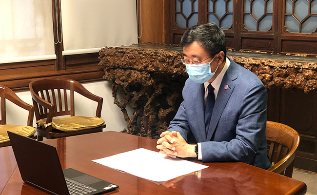 杨斌在致辞中首先向中意两国奋战在抗击新冠疫情一线的工作者致敬,并向病逝者及其家属表达深切哀悼。他呼吁两校师生把悲伤转化为积极的行动,用创新设计和技术创新点燃共同抗击疫情的信心。