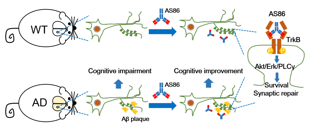 抗体AS86修复突触原理示意图