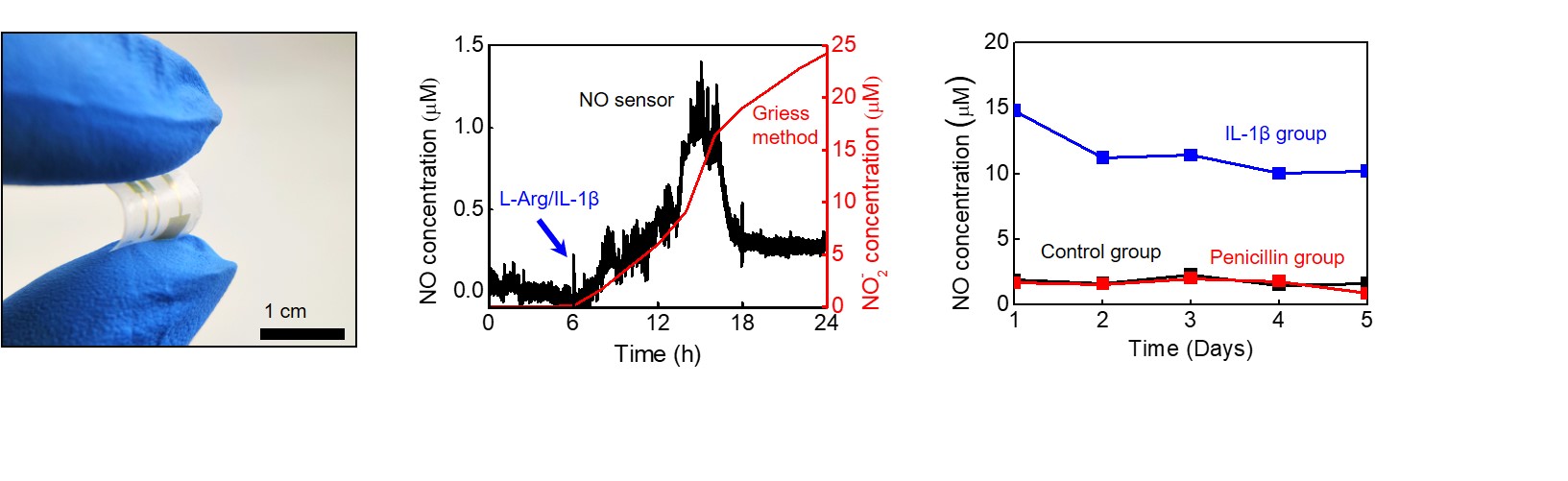 柔性瞬态传感器对软骨细胞及活体动物体内一氧化氮释放的实时监测