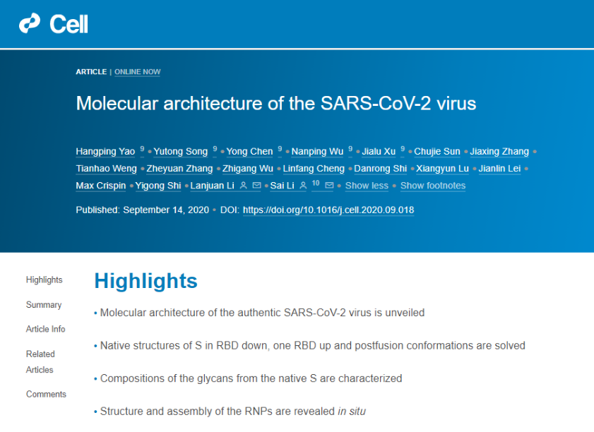 首次解析新冠全病毒分子结构