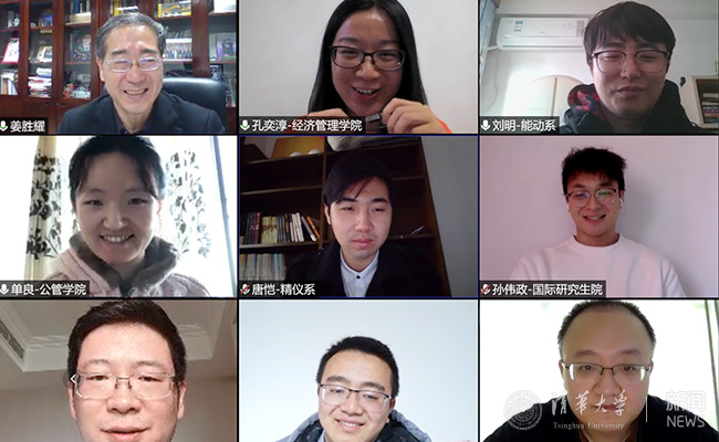 校党委常务副书记姜胜耀(左上)在与本科生、研究生党员进行线上交流