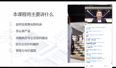 经管学院主管MBA教育的副院长徐心在致辞中表示,课程的顺利开课离不开学校的统一部署,也得益于特邀嘉宾和各高校师生的大力支持与努力。突如其来的疫情对教学工作的数字化和信息化提出了更高的要求。在做好技术保障的前提下,课程的教育、教学理念和教学方法需做出相应的改变与创新。特殊时期,课程特邀嘉宾为经济管理学院MBA的教育注入了强大的力量,邓锋校友全程参与课程体系的建立和各环节的设计,为课程的创立和开展投入了大量的精力。课程与中国实践紧密结合,覆盖技术商业化与科技企业建设的关键方面,突出科技与商业、技术与产品、价值观与商业模式的融合,并对学生的专业背景不设限制,旨在培养学生的全局视野与综合能力,提升创新力、组织管理能力与领导力等复合型能力。