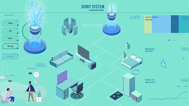 由米兰美院校友带领的根云视界团队提供了物联网平台。通过该平台,学生可以团队协作创建一个项目,实现创意概念,实施远程在线模拟,测试真实的物联网互动效果。也就是说,可以把以前线下硬件原型的内容在线虚拟出来。