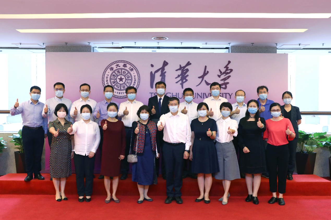 邱勇、杨斌、彭刚与在线教学专家组、工作组代表合影