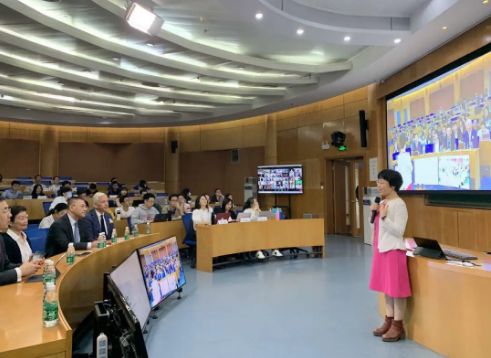 两名现场助教和一名线上助教连同技术老师早早就来到了全面改造后的iLIVE互动直播教室,当现任加拿大驻华大使鲍达民,比亚迪CPO王渤,课程委员会成员叶梅、王平四位校外嘉宾随段志蓉来到教室时,所有的准备工作都已完成,只待老师心无旁骛专注授课。晚7点半开始的课程毫无停顿进行到10点,特别是长达一个多小时的问答互动环节,助教协助嘉宾把讨论区众多问题摘出投到大屏幕上一起看,线上线下的交流在助教娴熟的操作中无缝轮转衔接。掌声和笑声不断,欢乐与知识齐飞,身处世界各地的师生同学们在这一刻找到了心灵的同频共振。“线下同学忙着为这次独特的经验合影留念,而课程的微信群里,也有好多兴奋得不想离开去休息的同学……”段志蓉也被这份依依不舍感动着,授课嘉宾在过程中说了一句话,也许可以作为对融合式教学模式的注解——之所以特别喜爱米兰这个平台,就是因为各方学子在这里融合的能力。
